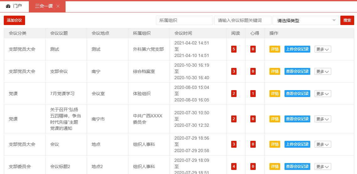 实现党组织信息统一管理,规范党组织成立、变更、换届、撤销流程,构建党组织基础信息库,生成党组织综合看板,精准高效获取党组织信息。统一党组织审核规范,加强领导班子管理,明确责任。有效解决党组织分散、难于管理的问题,提高党建工作科学化管理水平。